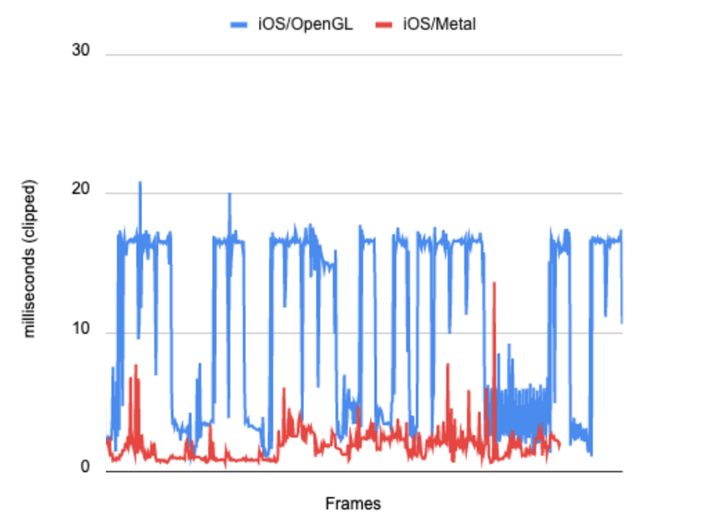 然而,最廣泛的效能提升是 iOS 上金屬的支援。